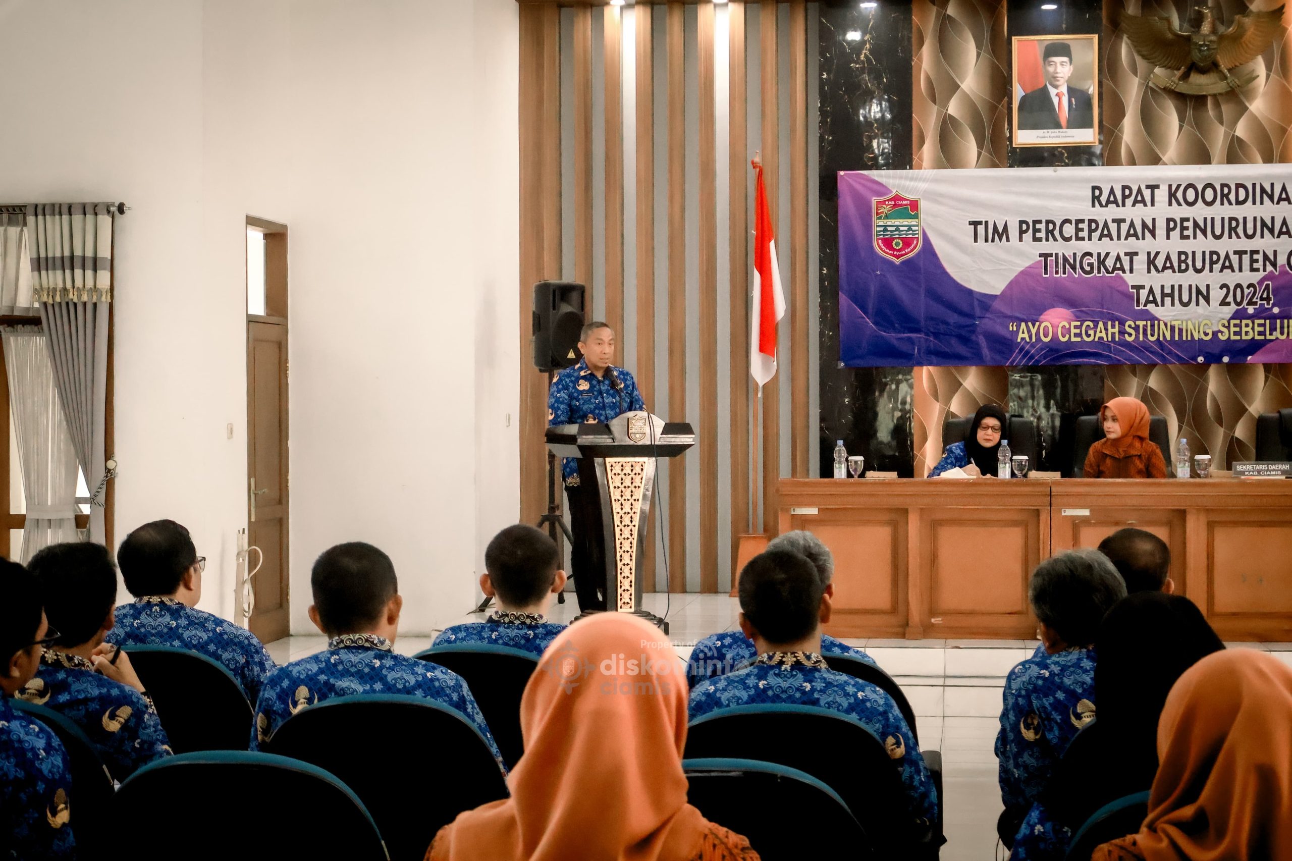 Sekretaris Daerah Kabupaten Ciamis Andang Firman Triyadi membuka rapat kordinasi (Rakor) tim Percepatan Penurunan Stunting (TPPS) pada Kamis,17 Oktober 2024 dengan tema “Ayo Cegah Stunting Sebelum Genting”. bertempat di Aula PKK Kab. Ciamis,